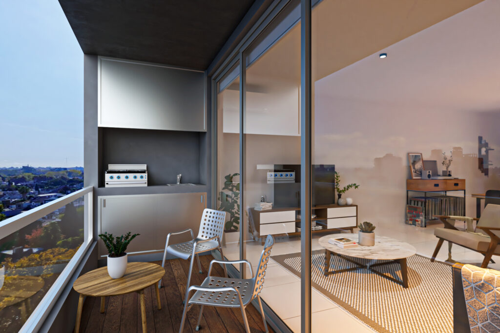 Amoblamiento de cocina con bajo mesada y estantes superiores.